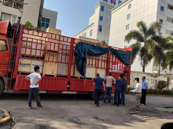 設(shè)備在公司廠房打包裝載