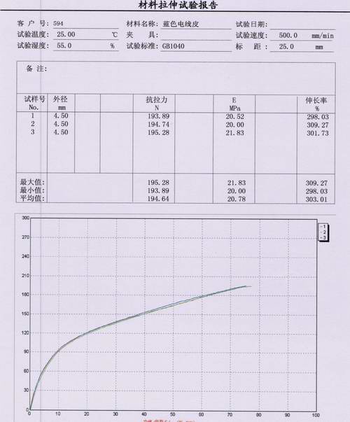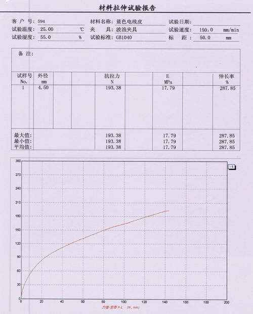 電線電纜的絕緣外皮報告內(nèi)容:①電線外徑 ②抗拉力 ③彈性模量 ④伸長率