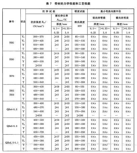 縱向室溫拉伸試驗、硬度試驗、90度彎曲試驗條件及性能要求,應達到下表規(guī)定: